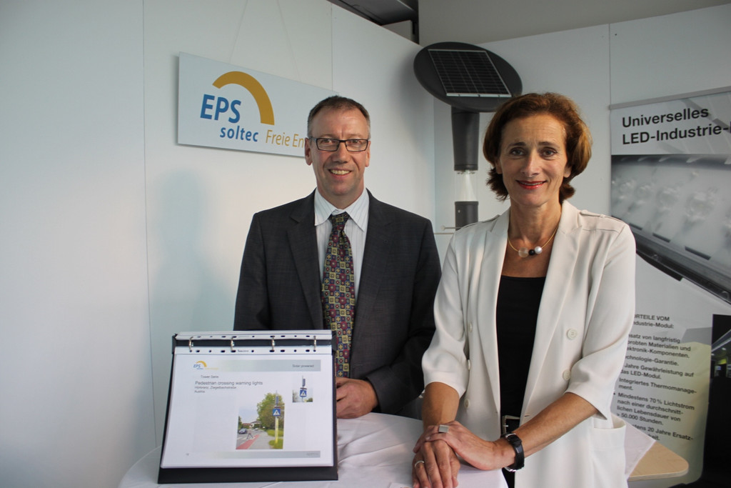 Landtagspräsidentin Bernadette Mennel mit EPS soltec GF Richard Hutter