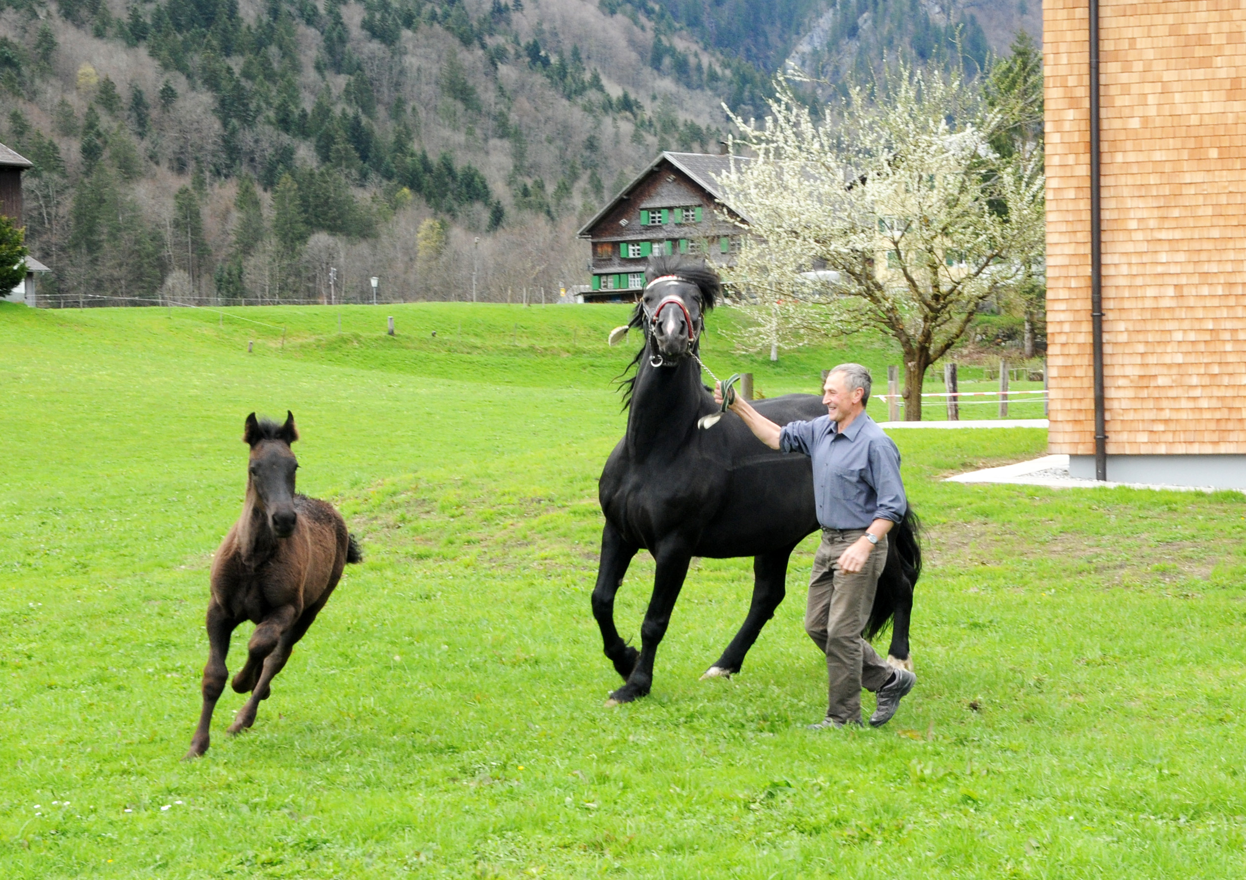 Josef Muxel samt Prachtstute und deren Fohlen