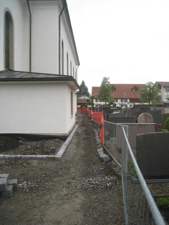 Arbeiten im Umfeld der Pfarrkirche mit Pflasterwegen und Abwasserleitungen