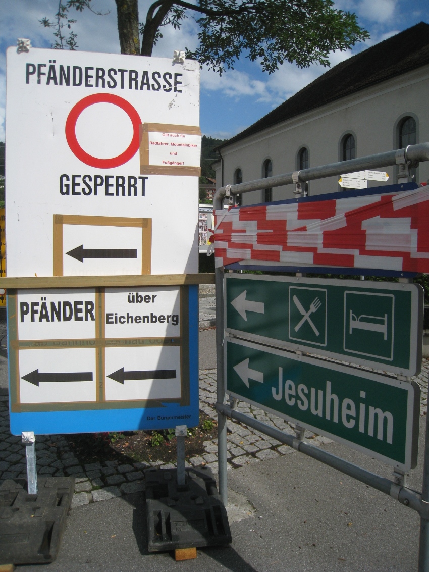 Hinweistafeln am Beginn der Pfänderstraße informieren die Autofahrer über die aktuellen Sperren.