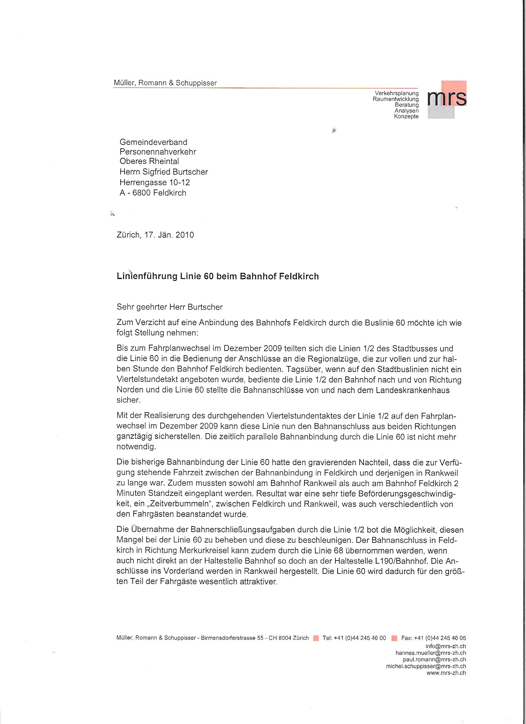 Begründung der Linienführung der Linie 60 beim Bahnhof Feldkirch
