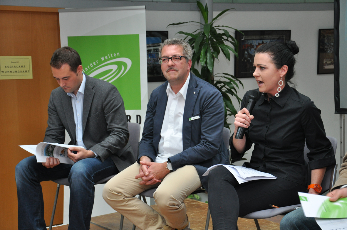 Tobias Pernthaler, Hap Krenn, Moderatorin Babette Karner.