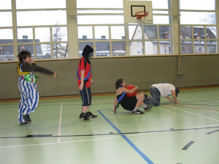 Viele bunte Mäschgerle im Turnsaal