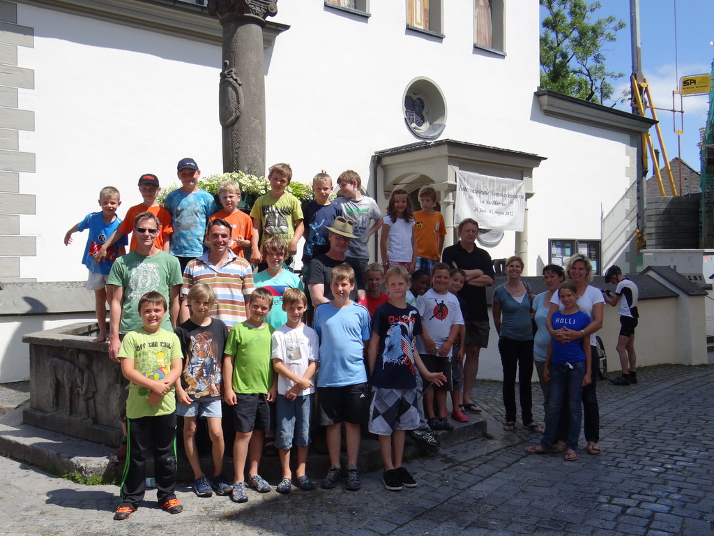 Spieler und Eltern in der Altstadt von Wangen