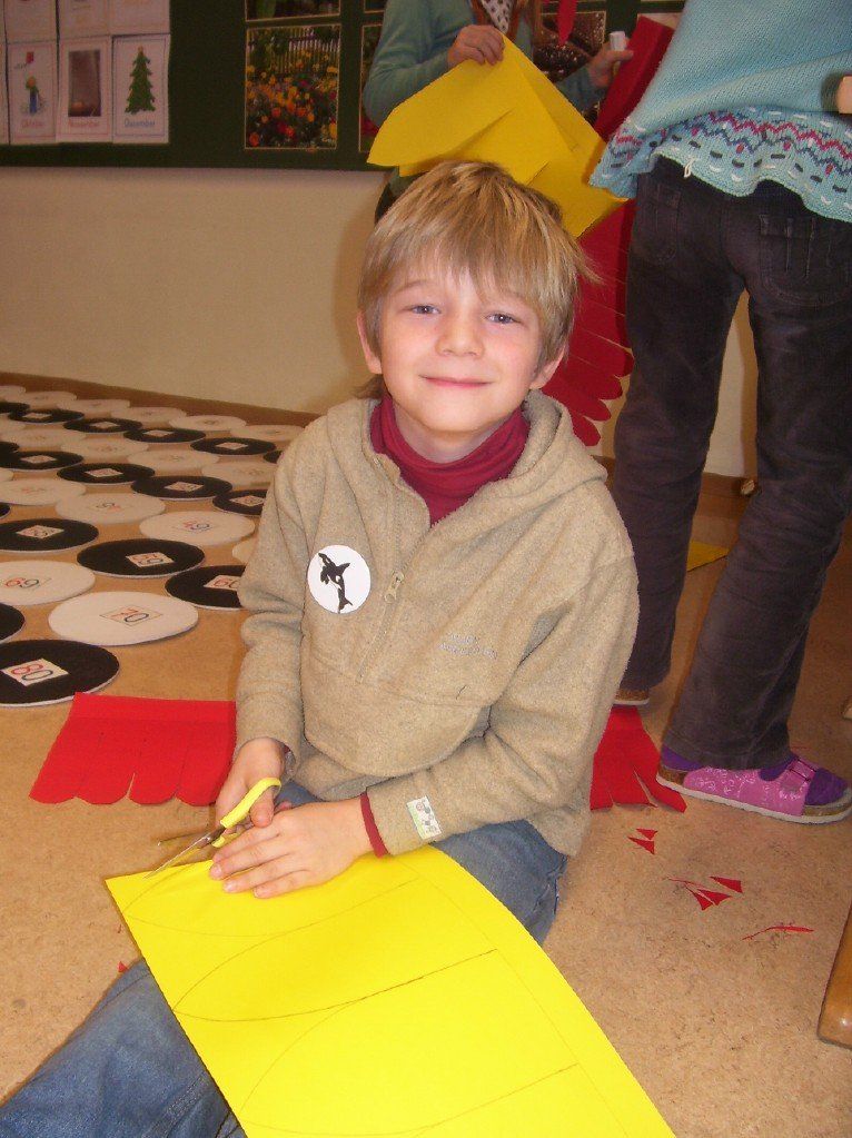 Laurin eifrig am Ausschneiden.
