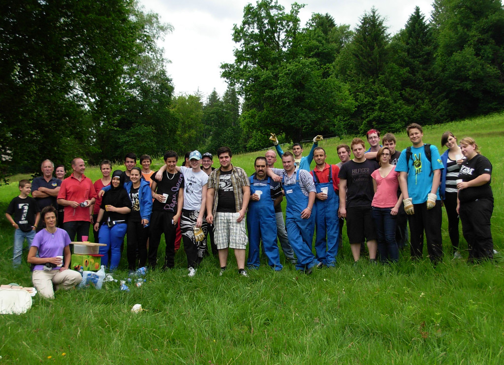 Fotoshooting nach getaner Adlerfarn-Bekämpfungsaktion der Collini –Lehrlinge.