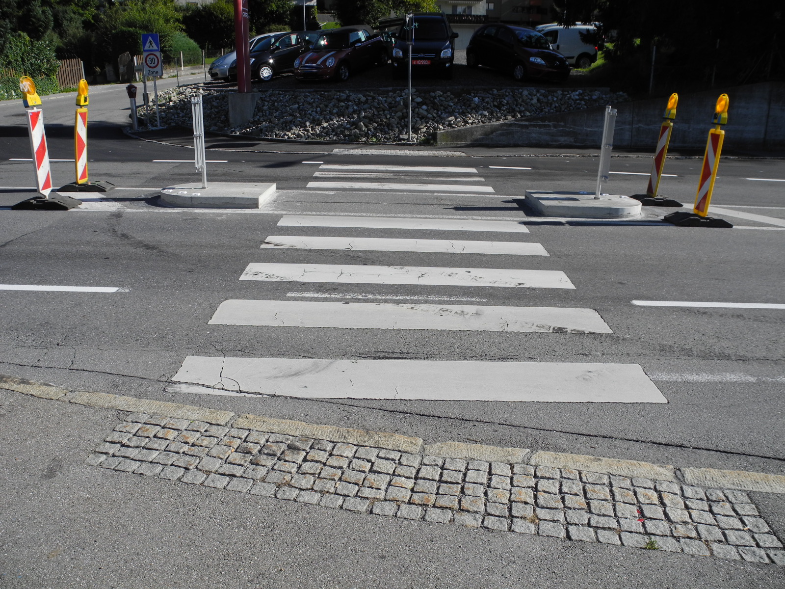 Der Schutzweg bei der Einmündung der Rappenwaldstraße