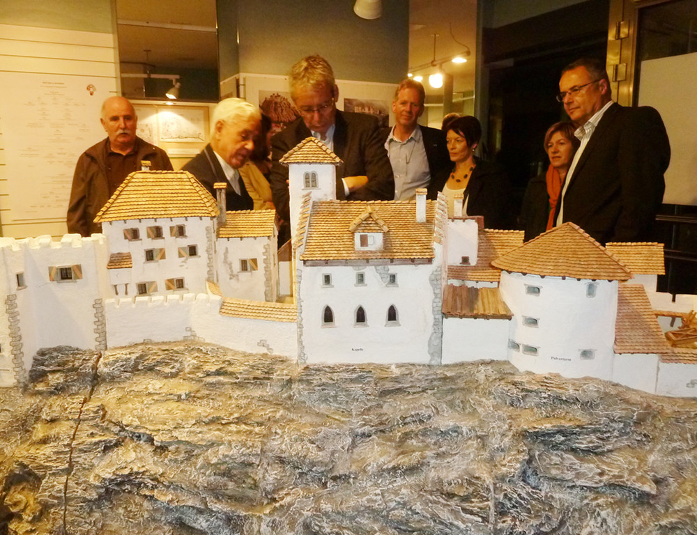 LSth. Karlheinz Rüdisser (Mitte) ließ sich vom „Burgenhuber“ die Burganlage Alt-Ems erklären.