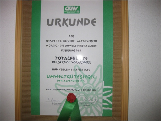 Die Totalphütte hat das Umweltgütesiegel