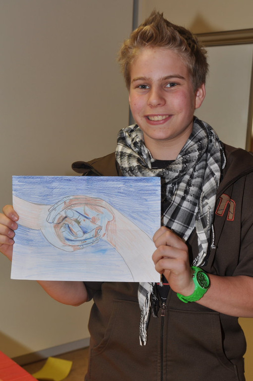 „Wenn die Menschheit nicht zusammenhält, fällt die Welt auseinander“, eine kreative Lösung von Marcel Schweizer.