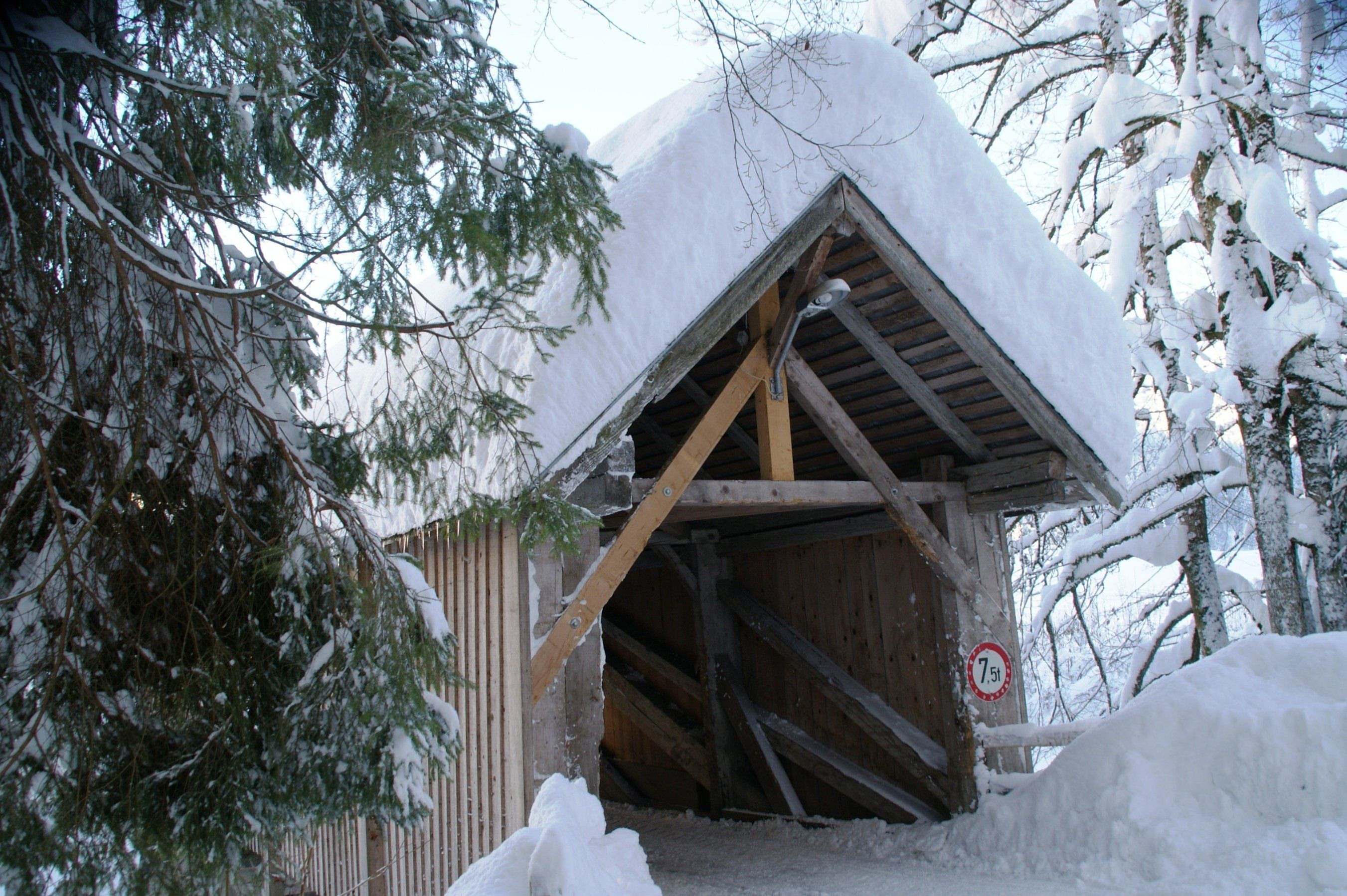 Die gedeckte Holzbrücke über die Bolgenach