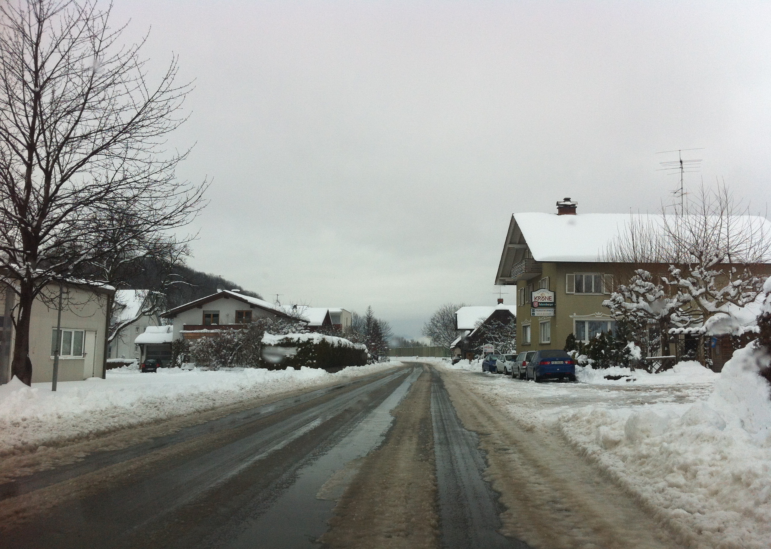 Schnee- und Straßenzustand Koblach, Montag, 4. Februar 2013 – Mittagszeit