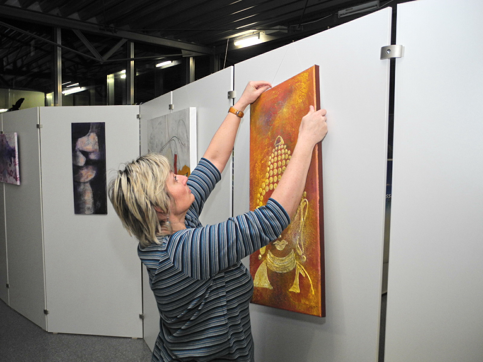 Ulli Geiger beim "Hängen" ihrer Werke