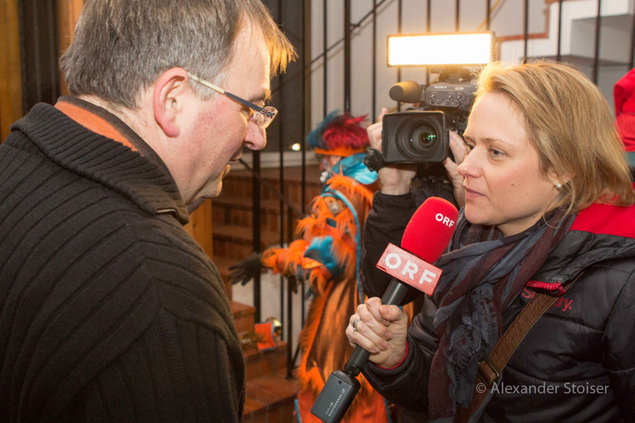 Pfarrer Tinkhauser im Gespräch mit der Reporterin des ORF