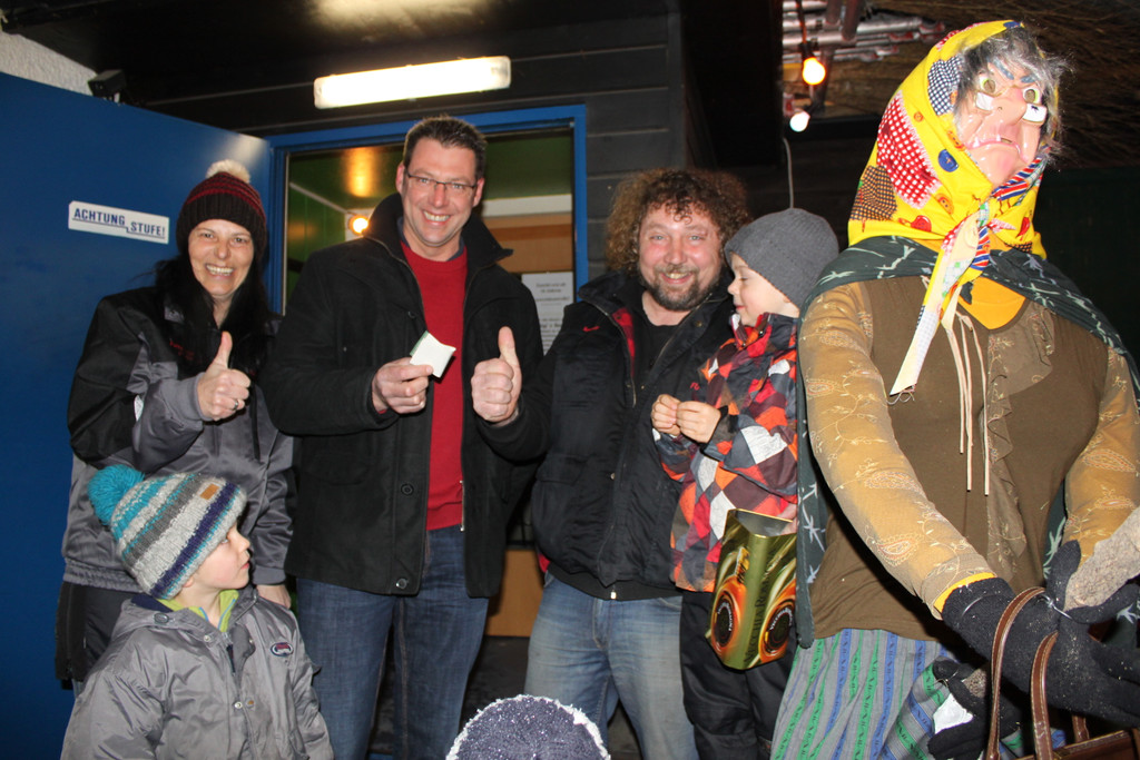 Taufe Waldburga. Im Bild v.li. Sigi Rom, Obmann FZ Fraxern Andreas Lins, Speedy Rom und "Glücksfee" Sandro und natürlich Waldburga