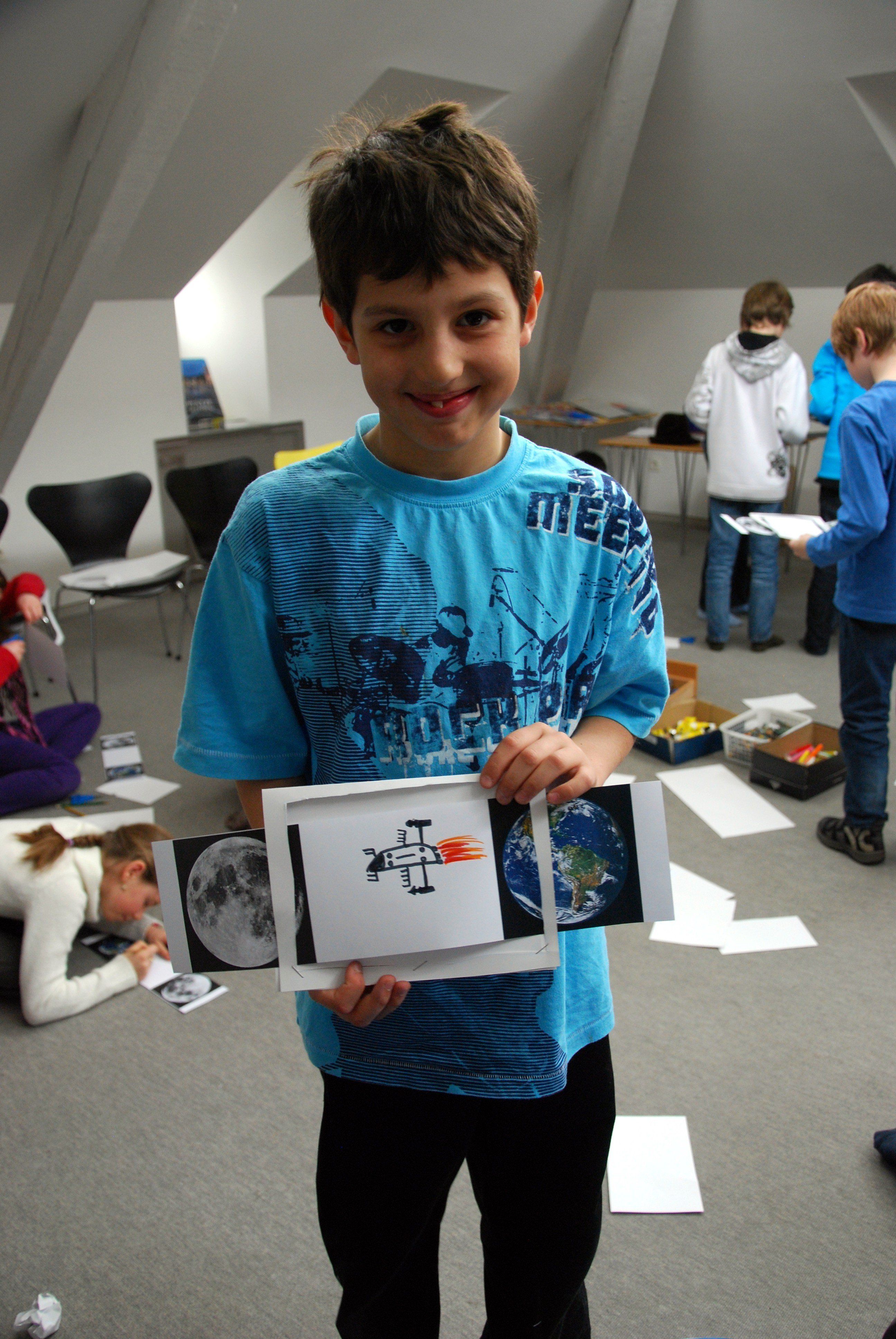 Benjamin mit seinem Weltraum-Fernseher.