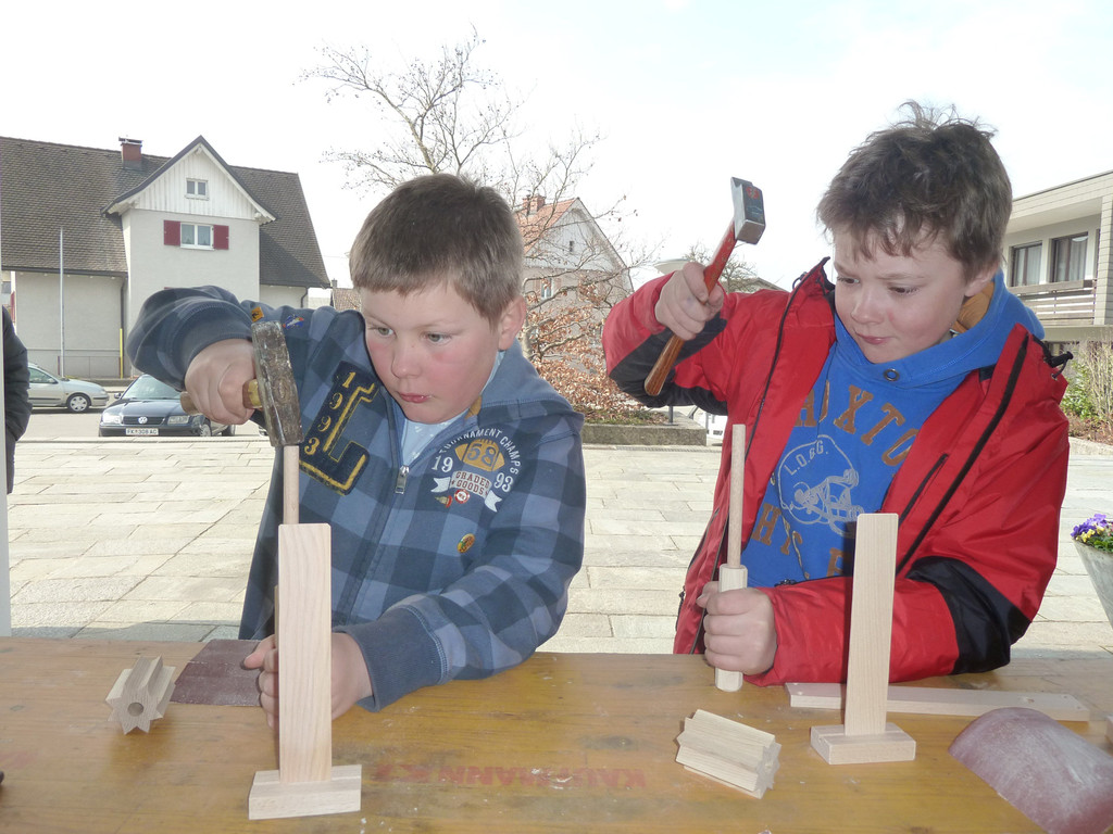 Jonathan und Elias beim Ratschen bauen