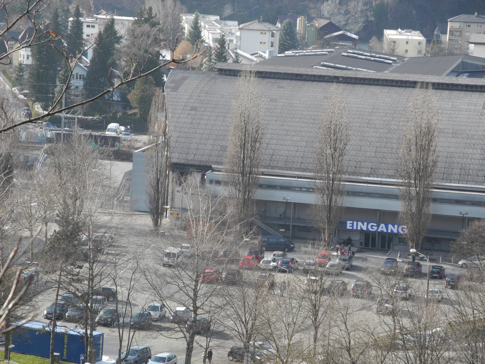 Der provisorische Wertstoffhof auf dem Parkplatz der Vorarlberghalle