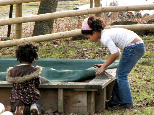 Beim Spielplatz an der Blasenberggasse versuchen die Kinder die Sandkiste aus dem Winterschlaf zu rütteln