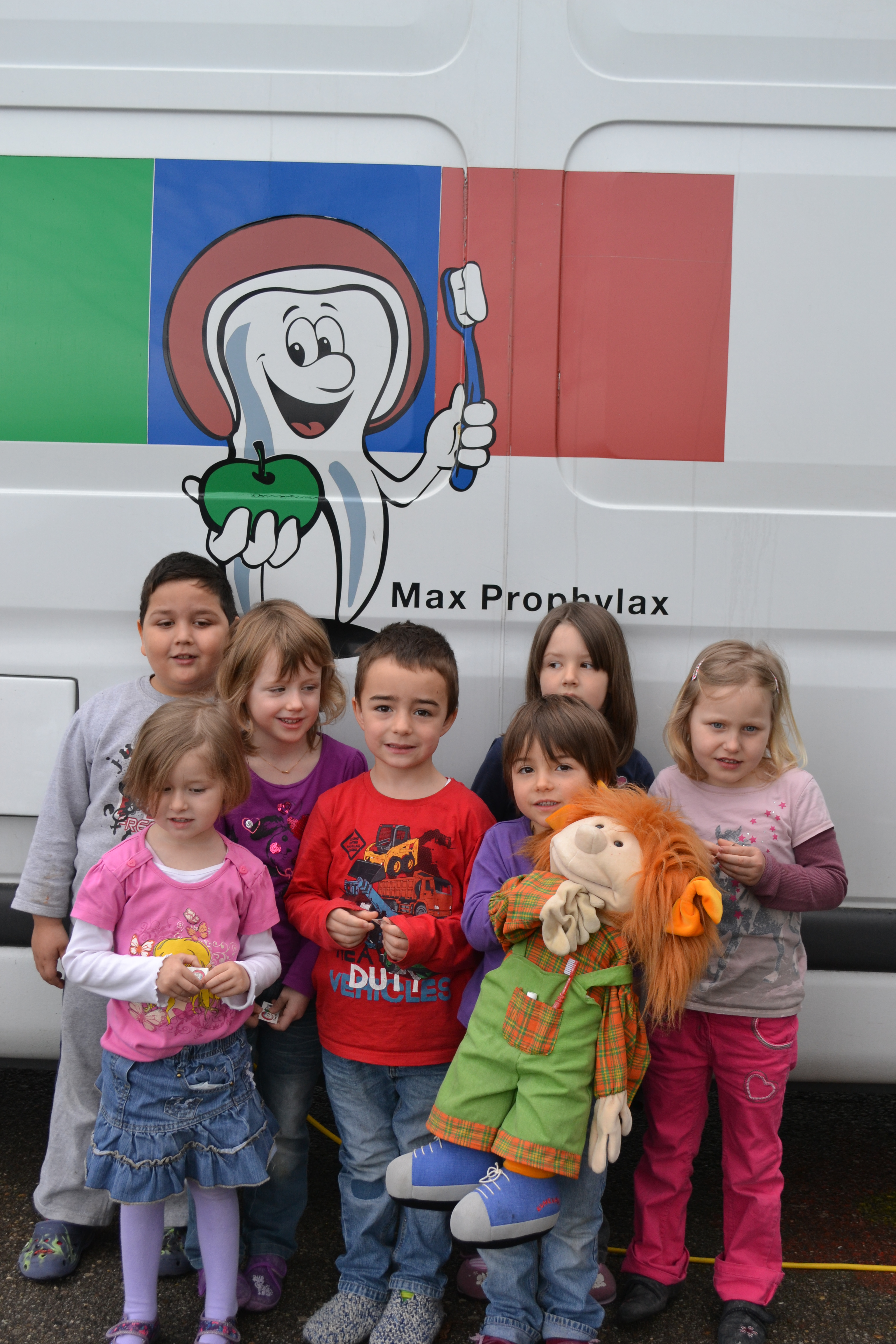 Ismail (6), Belinda (4), Maya(4), Emil (4), Jana (5), Amrei (4) und Sarah (5) nach der gelungenen Untersuchung