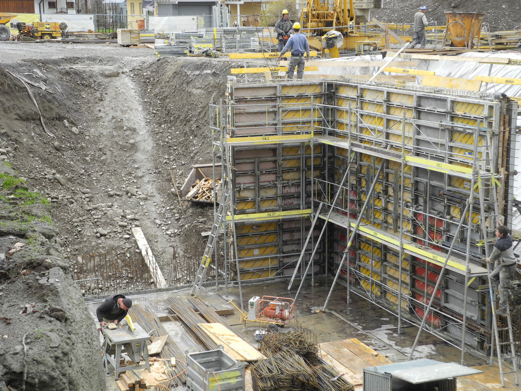 Eine der Seitenwände für das unterirdische Heizwerk