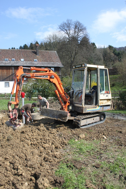 Andreas Fessler und Christoph Sturn vom Wirtschaftshof der Gemeinde beim „Wasserversorgungsknoten Schwendeweg“ fachmännisch an der Arbeit.
