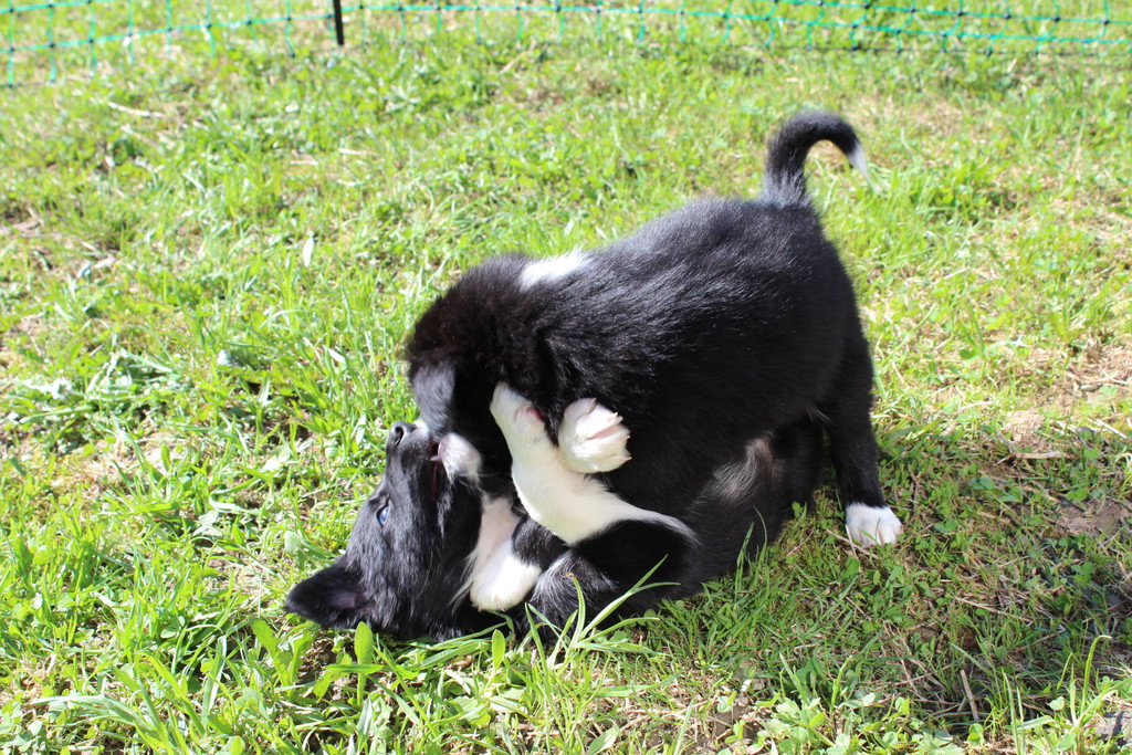 Süße Border Collie Welpen tollen im Garten herum