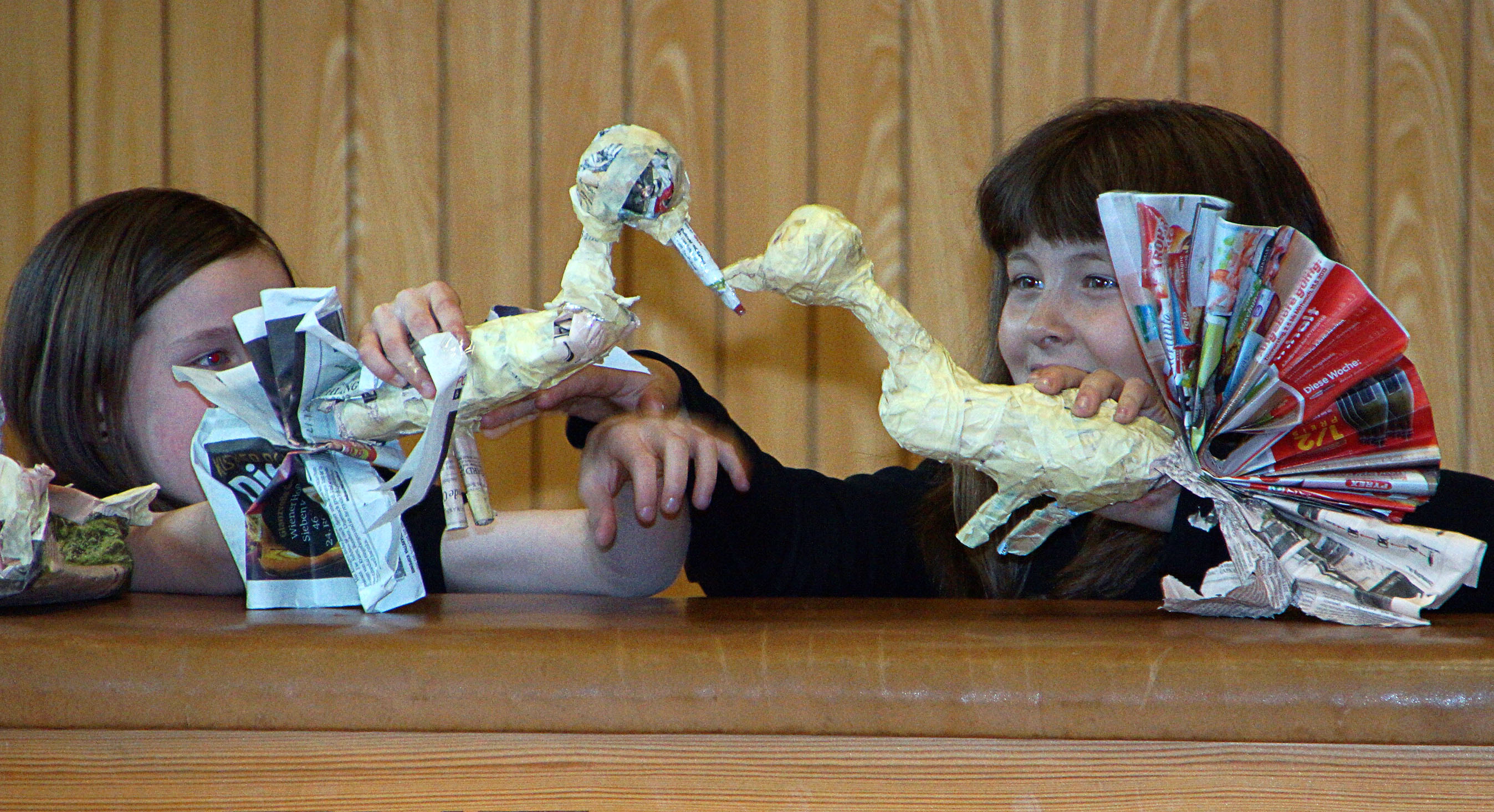 Illustres Puppenspiel der „gerupften“ Hühner.