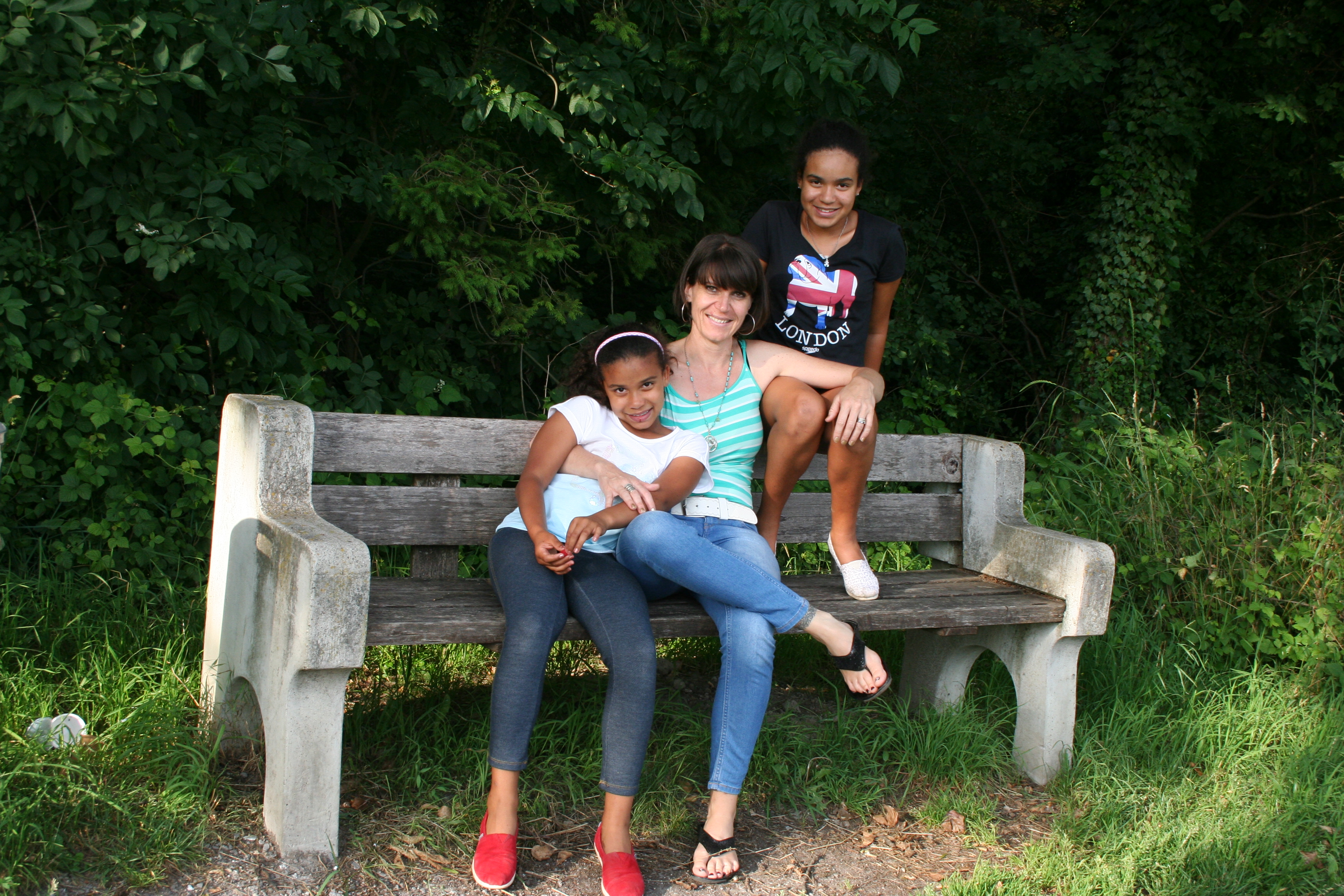 Am Waldesrand: Mama Claudia mit Elina und Sophia.