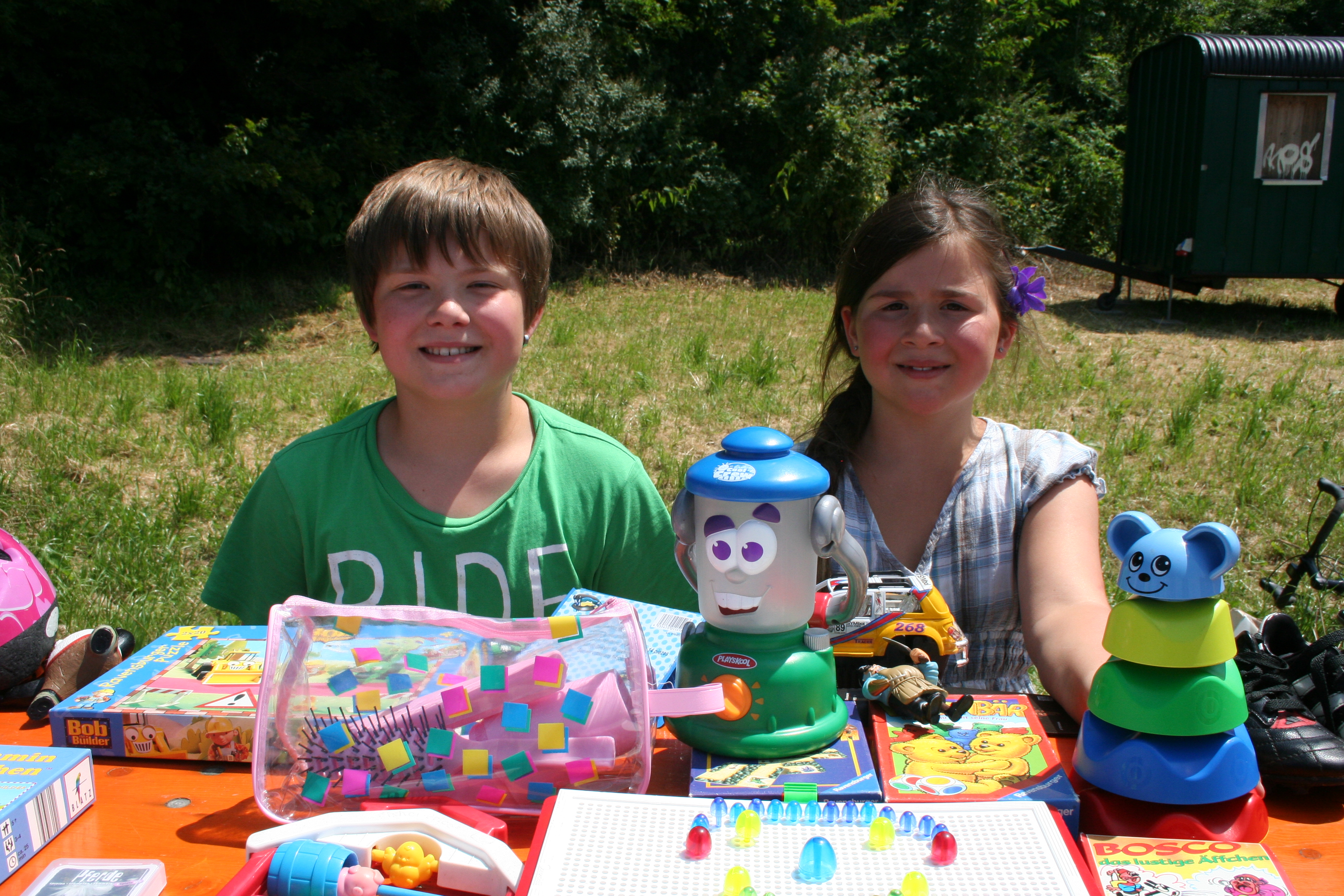 Philipp und Hannah übten sich als Verkäufer.