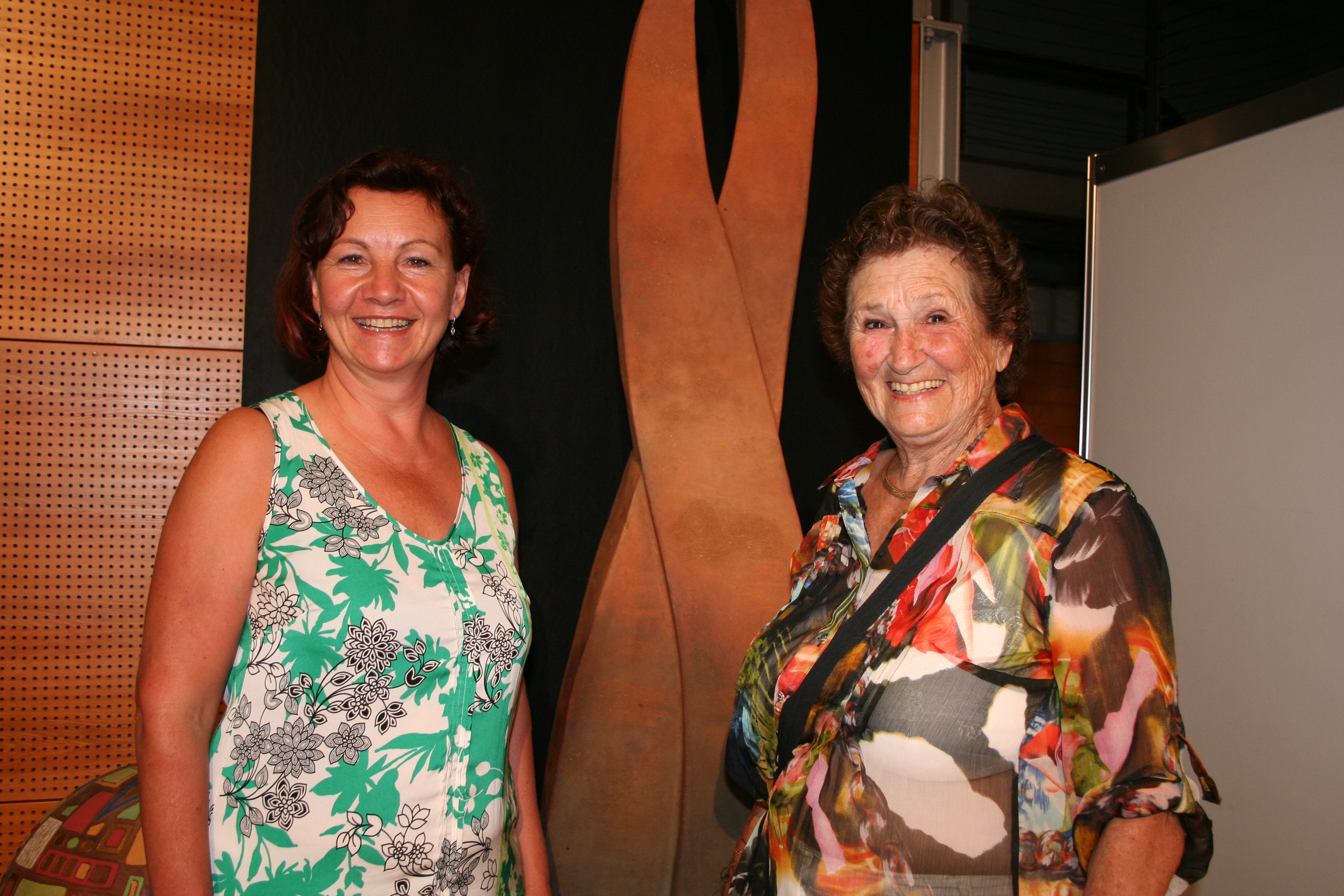Maria Berger (Kunstleiterin und Ausstellerin) mit Edith Gratt (mit 83 Jahren älteste Kursteilnehmerin und Ausstellerin).
