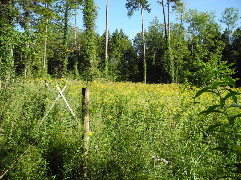 Das mit einem Wildschutzzaun abgesicherte Areal mit den Edelkastanien Jungpflanzen