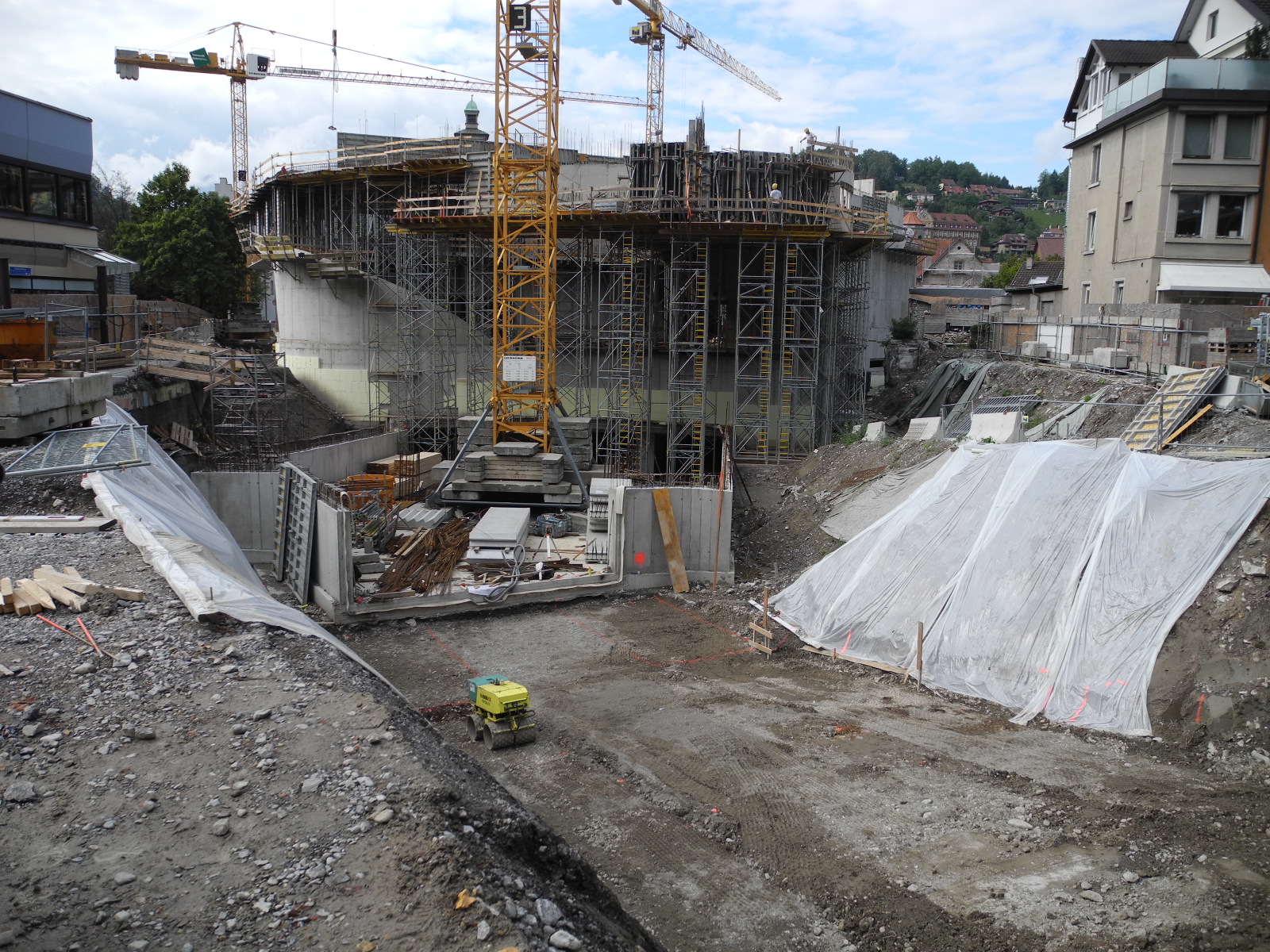 Die riesige Tiefgarageneinfahrt ist im Bau