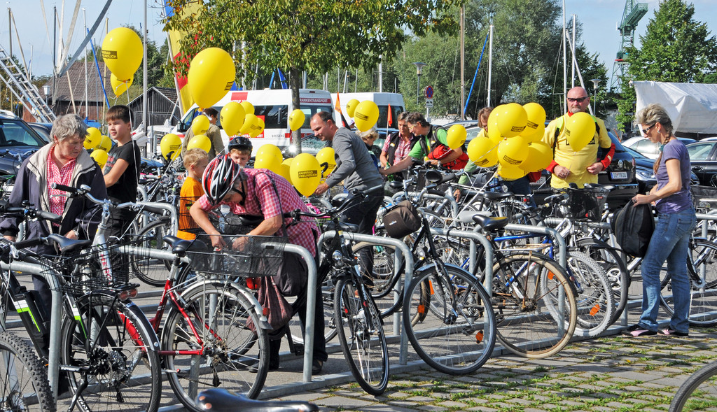 Fahrradparade mit Ziel in Hard