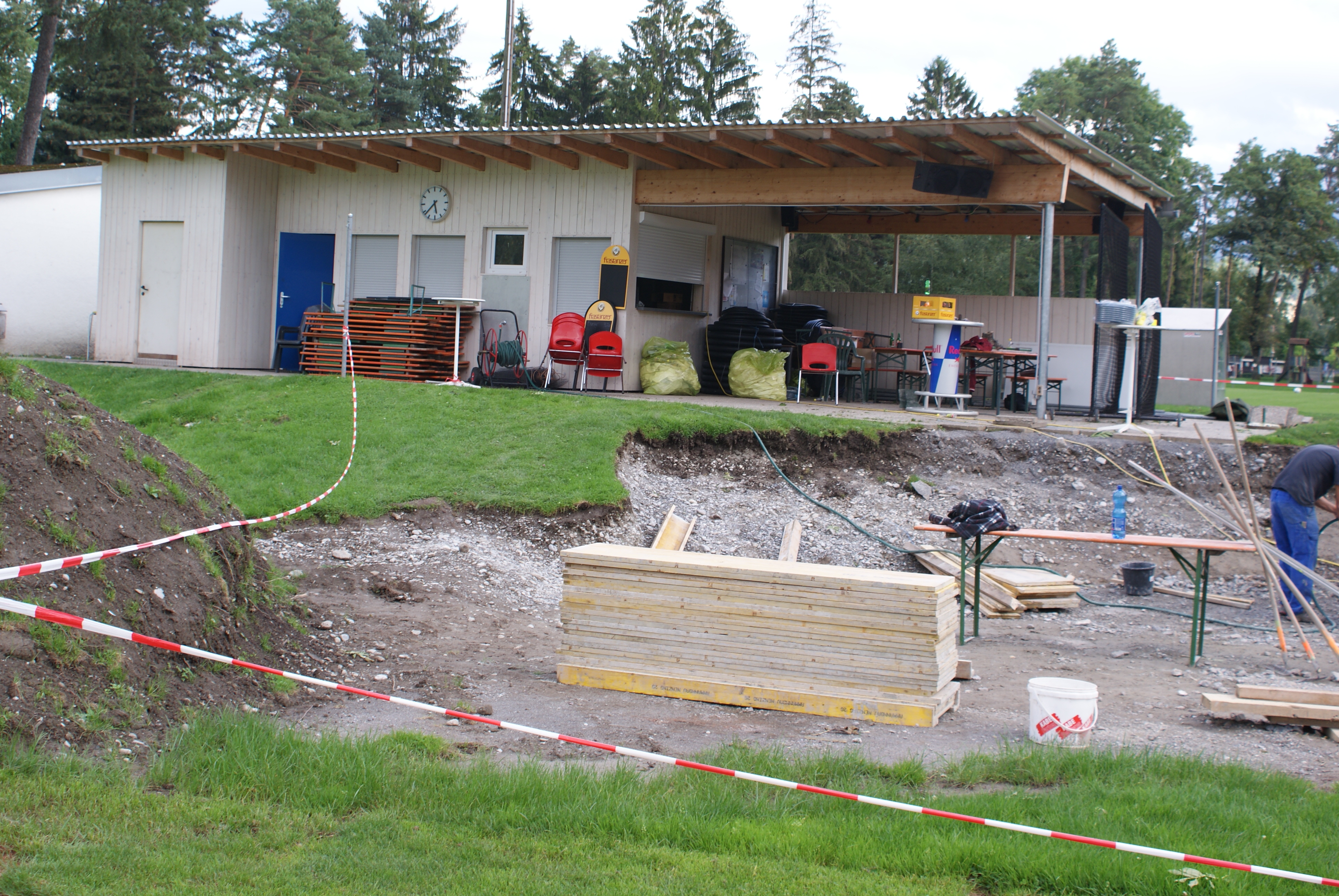 Im Hintergrund der Kiosk, denn der Verein vor zwei Jahren errichtet hat, davor entsteht eine Tribüne für 60 Zuseher.