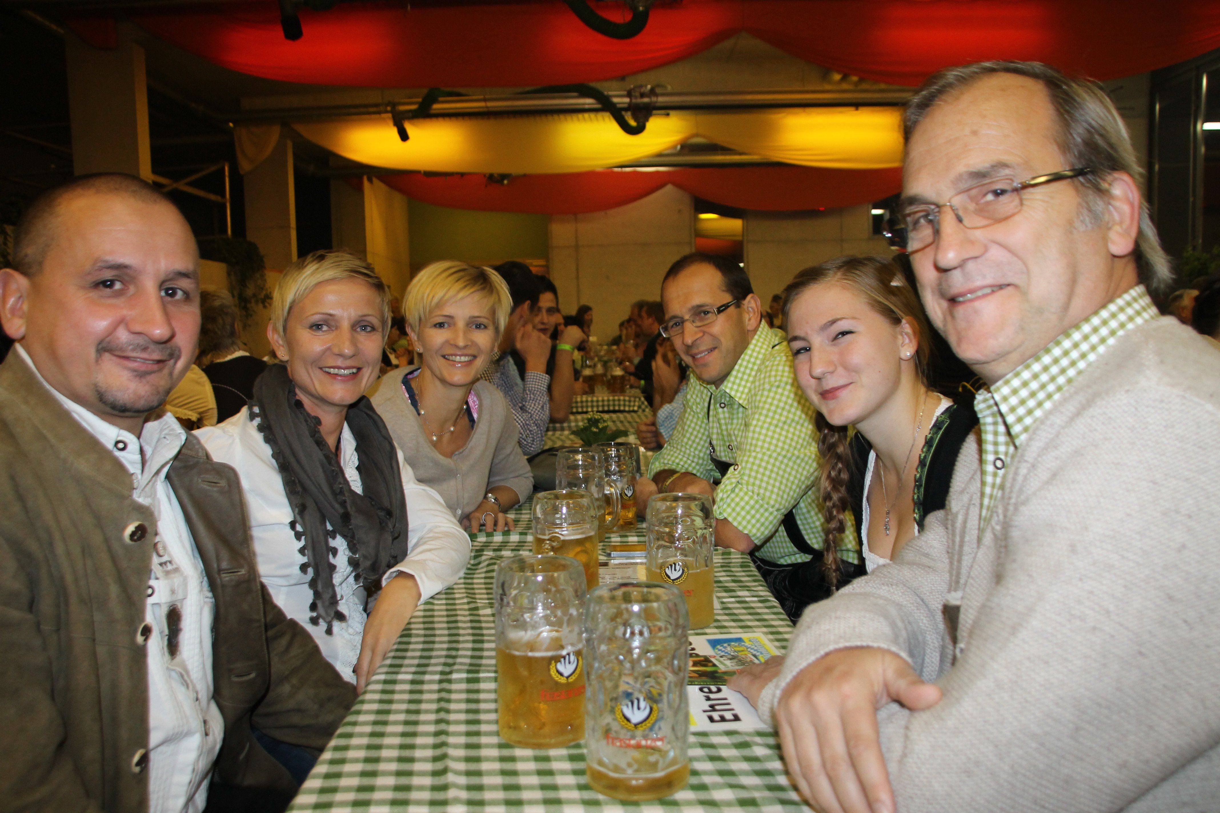 Rudolf Mayer und Kurt Michelini mit Gattin, Bürgermeister Eugen Gabriel mit Tochter.