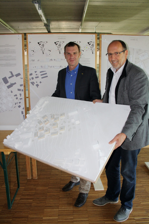 Bürgermeister Xaver Sinz und Projektleiter Andreas Deuring (i+R Wohnbau)