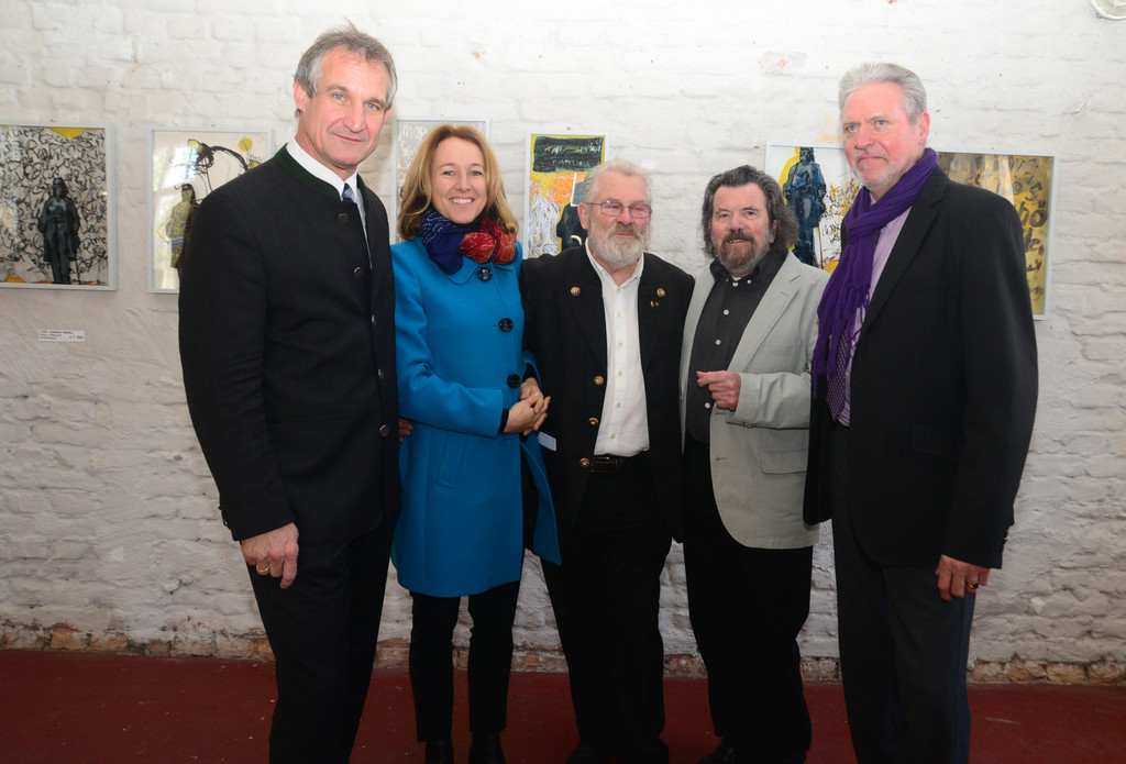 Eröffnung der oberösterreichisch-vorarlbergischen Schau mit (von links) Markus Linhart, Judith Reichart, Hans Kallinger, Reinhard Adlmannseder und Günter Gruber.