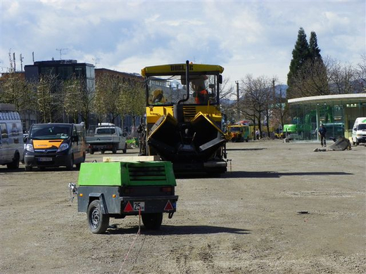Erste Teerarbeiten am Hafen