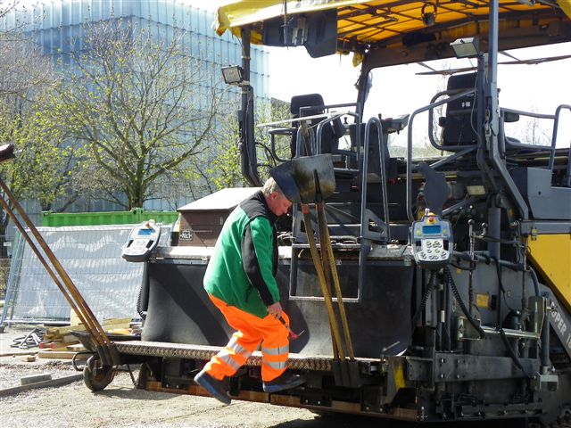 Erste Teerarbeiten am Hafen