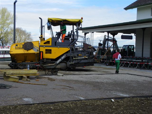 Erste Teerarbeiten am Hafen