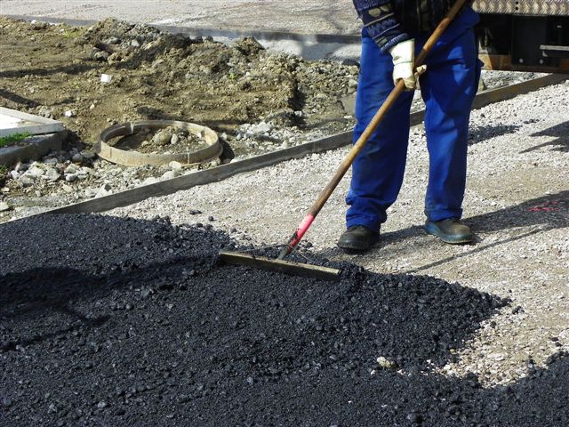 Erste Teerarbeiten am Hafen