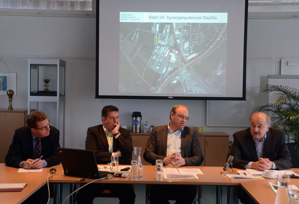 Die Bürgermeister (von links) Manfred Flatz (Schwarzach), Elmar Rhomberg (Lauterach), Christian Natter (Wolfurt) und Hans Bertsch (Kennelbach) präsentierten die Standortentscheidung für das neue, gemeinsame Abfallsammelzentrum.