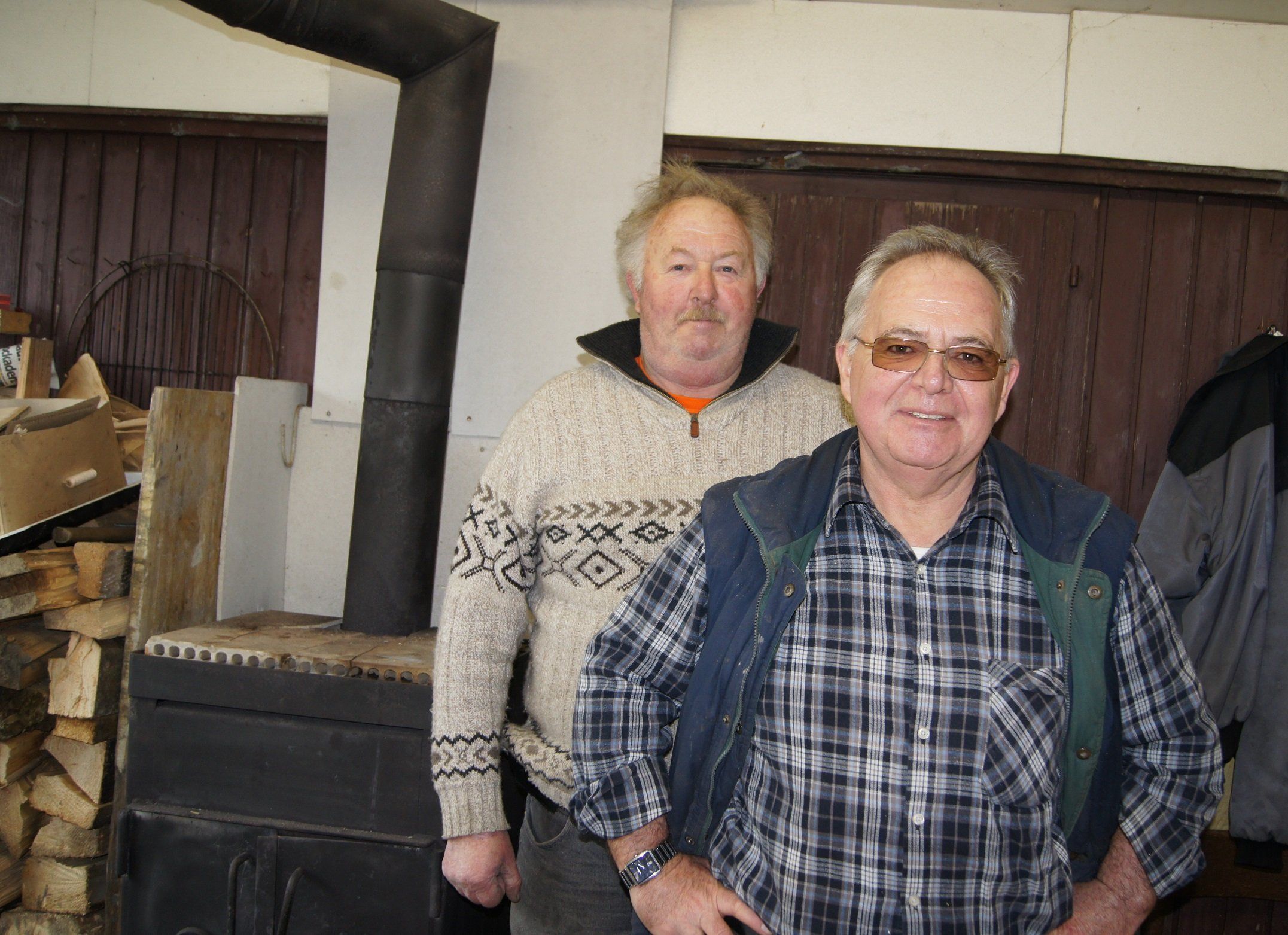 Freddy Bösch und Eduard Alge sorgen für eine behagliche Wärme in der Hütte.