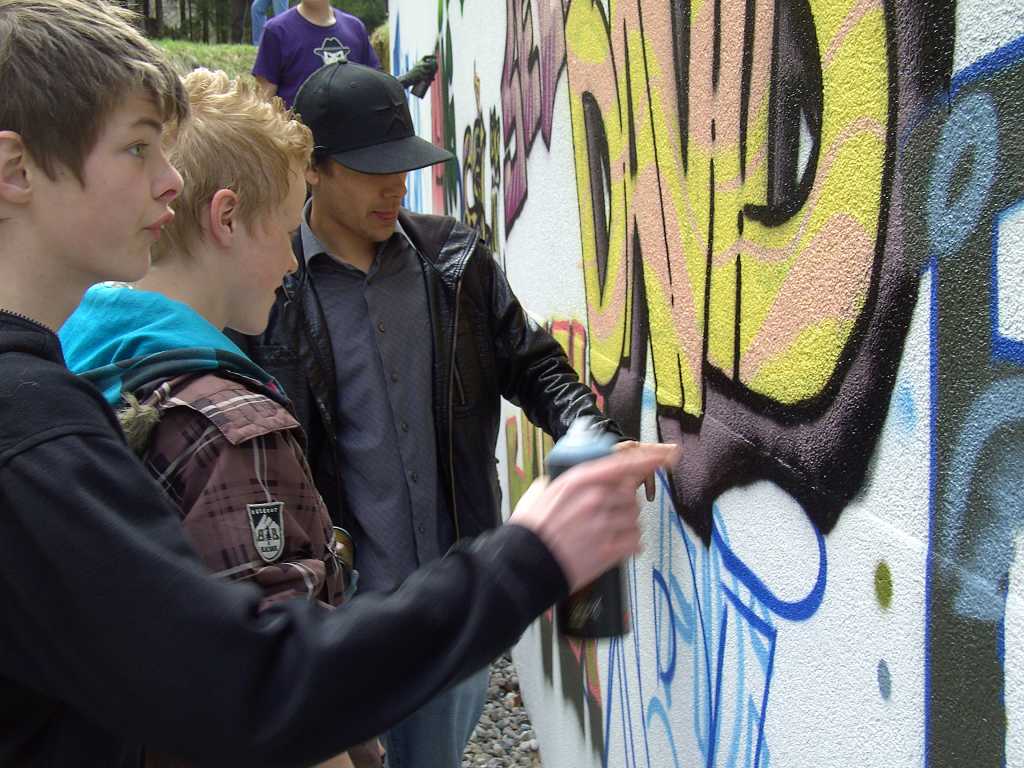 Gemeindegebäude als Graffiti-Kunstobjekt für Jugendliche