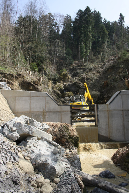 Projekt Klausmühlebach: Arbeiten im Geschiebeauffangbecken