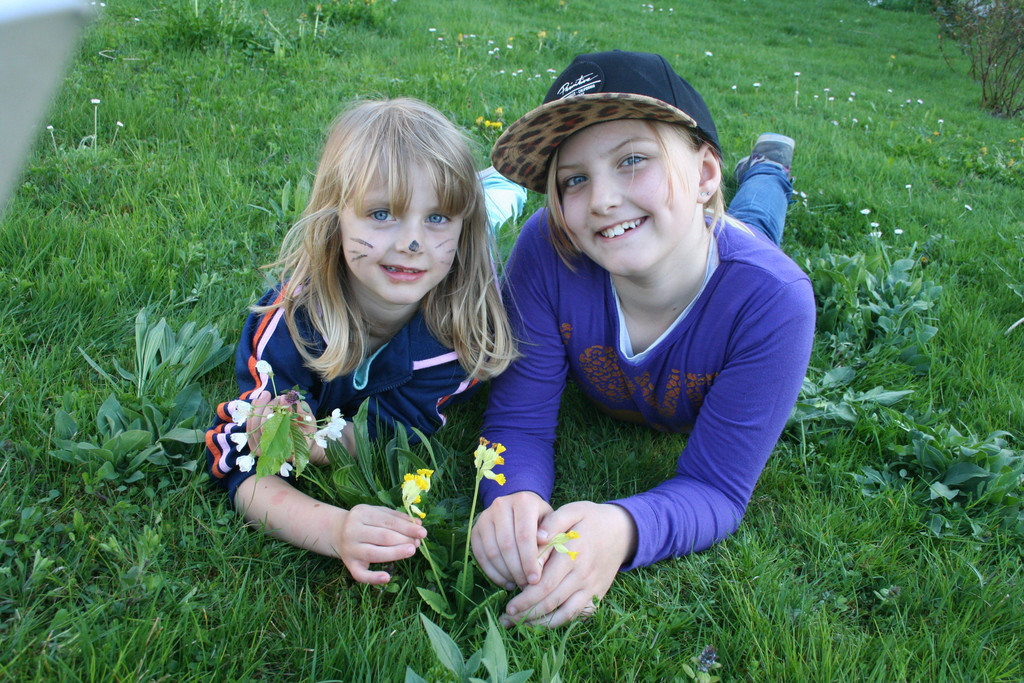 Hübsche Blumen pflücken Celine und Vanessa.