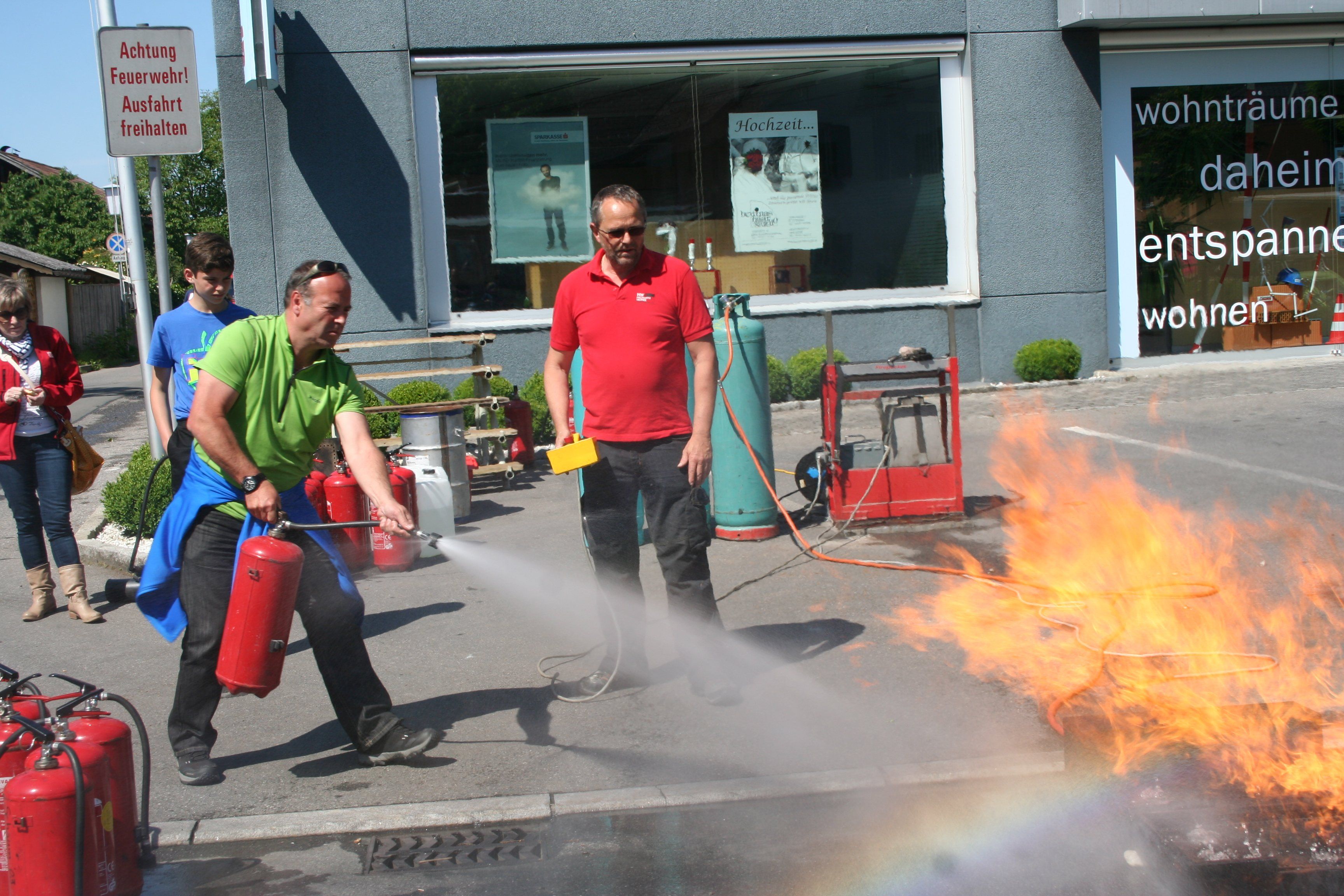 Mit Hilfe des Brandschutzexperten Werner Hackbarth konnte die Bevölkerung die richtige Handhabung des Feuerlöschers üben.