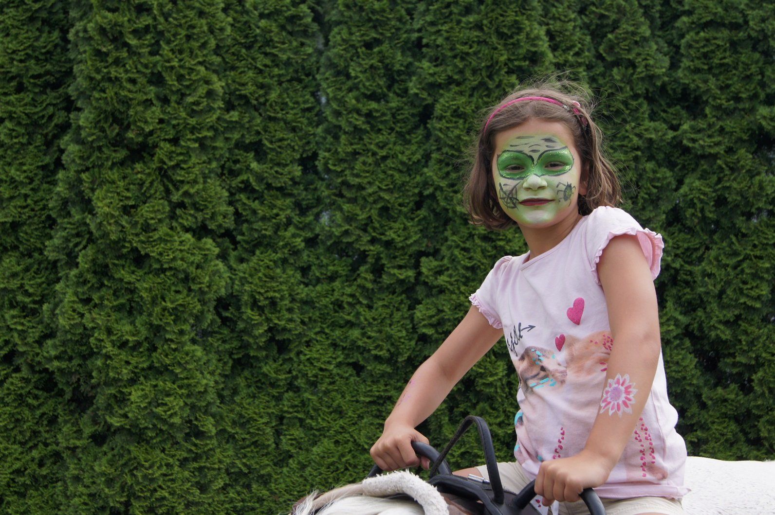 Mit einem grünen Gesicht wagt auch Hannah eine Runde.