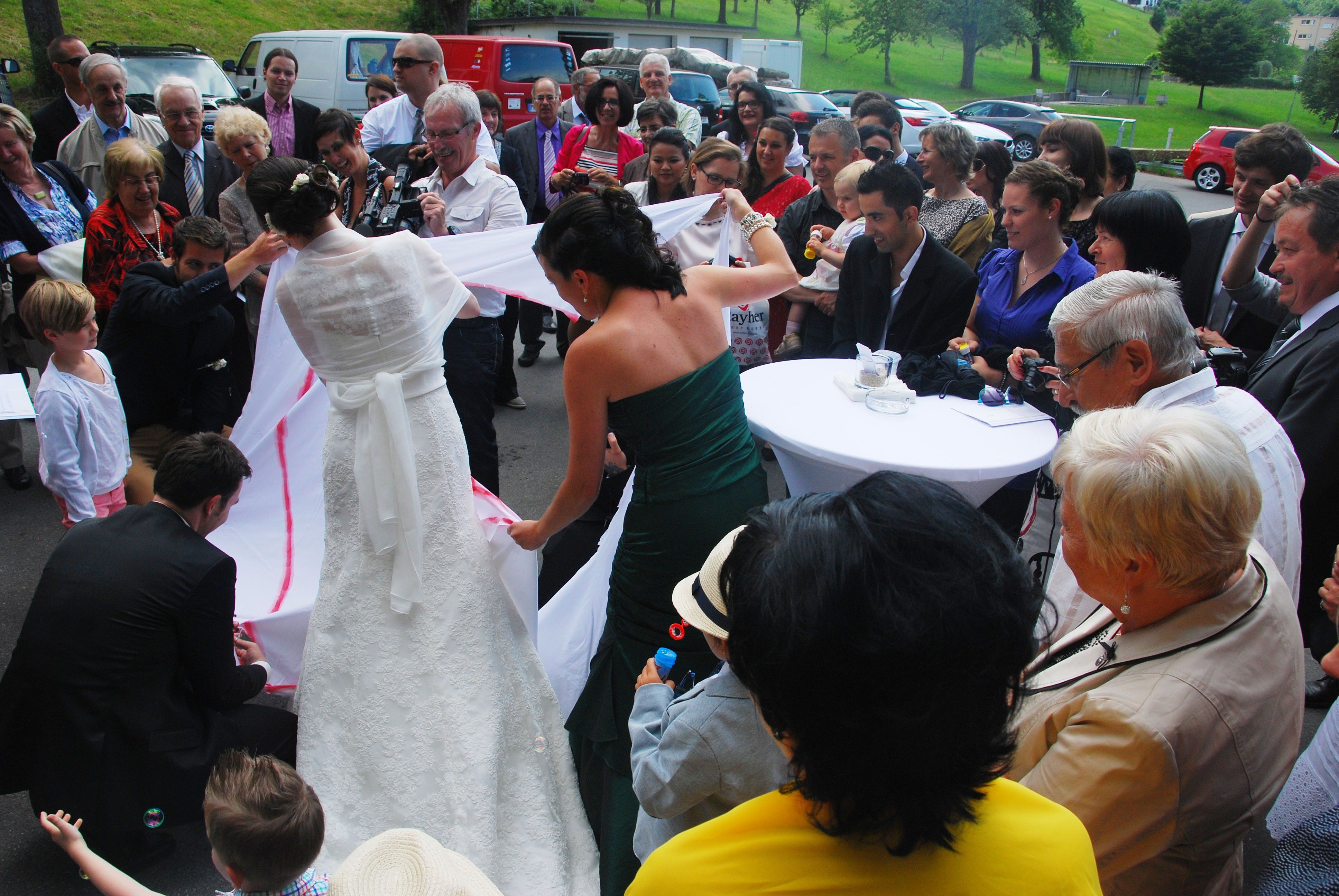 Wer ist schneller, beim AUsschneiden des großen Herzes? Mathias war im Nachteil, ihm wurde nur eine kitzekleine Nagelschere zur Verfügung gestellt.